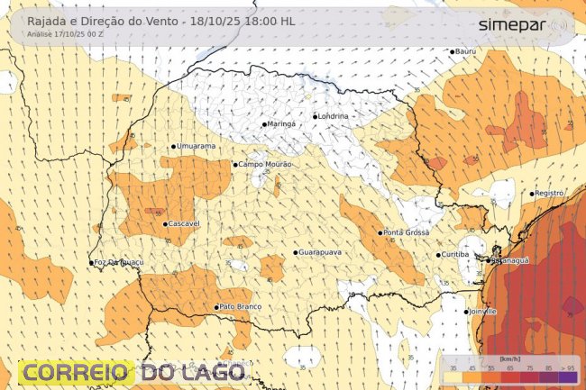“Nestas regiões há previsão para pancadas de chuva com muitas descargas elétricas e também condições para ventos fortes ainda na manhã desta sexta. As áreas de instabilidade avançam para as demais regiões ao longo do dia em forma de pancadas de chuvas isoladas, mas não se descarta também a ocorrência de temporais localizados em algumas cidades no Centro-Sul, Noroeste, Norte e Leste do estado próximo ao período da noite”, explica Paulo Barbieri, meteorologista do Simepar.