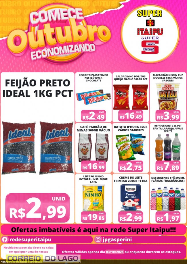 Nesta sexta-feira (3), Super Itaipu e Super Santa Helena oferecem promoções imperdíveis em alimentos e produtos de primeira necessidade, permitindo que os clientes comecem outubro economizando.
