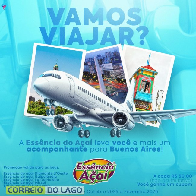 Clientes que comprarem açaí em qualquer unidade da Essência do Açaí ou na Sol Sorveteria recebem um cupom a cada R$ 50,00 em compras para concorrer a uma viagem a Buenos Aires com acompanhante.