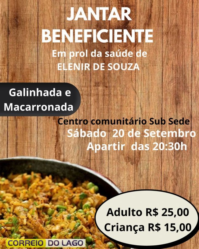Para auxiliar nos custos com medicamentos e alimentação especial, será realizado um jantar beneficente no dia 20 de setembro, no centro comunitário de Sub-Sede. O evento busca arrecadar recursos e também reforçar o apoio da comunidade nesse momento delicado.