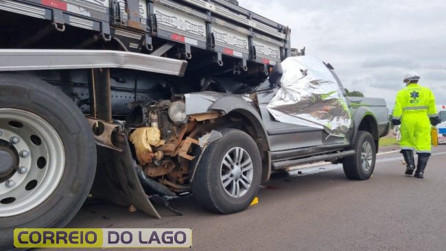 A violência da batida fez com que a caminhonete L200 ficasse presa à traseira do caminhão. Ao descer para prestar socorro, o motorista encontrou o condutor da caminhonete já sem vida. Até o momento, a vítima não foi identificada.