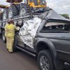 Condutor de L200 morre ao bater contra caminhão carregado com tratores na BR-163