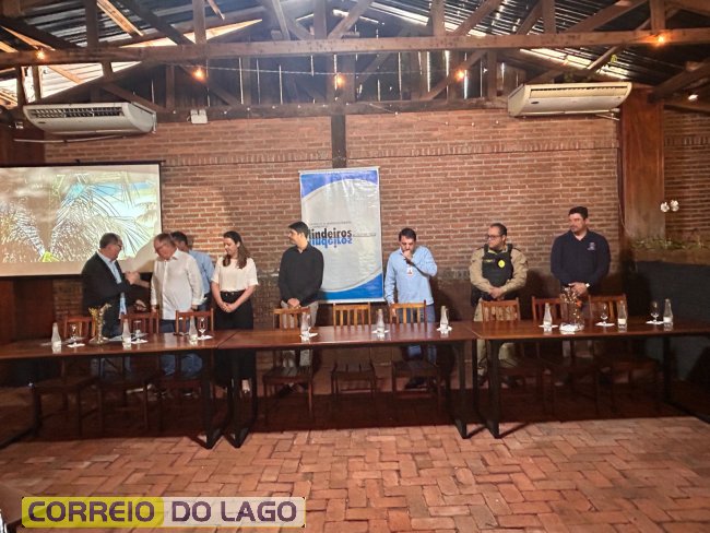 A mesa de honra contou com a presença de diversas autoridades, incluindo o vice-presidente Gileade Osti (prefeito de Guaíra), a vice-prefeita de Santa Helena, Fabrícia Bedendo, o Coronel Valmir de Souza, e o secretário Paulo Adriano Grenzel, além de prefeitos e presidentes de associações comerciais dos municípios associados, que reforçaram a importância da união de esforços em prol da região lindeira.