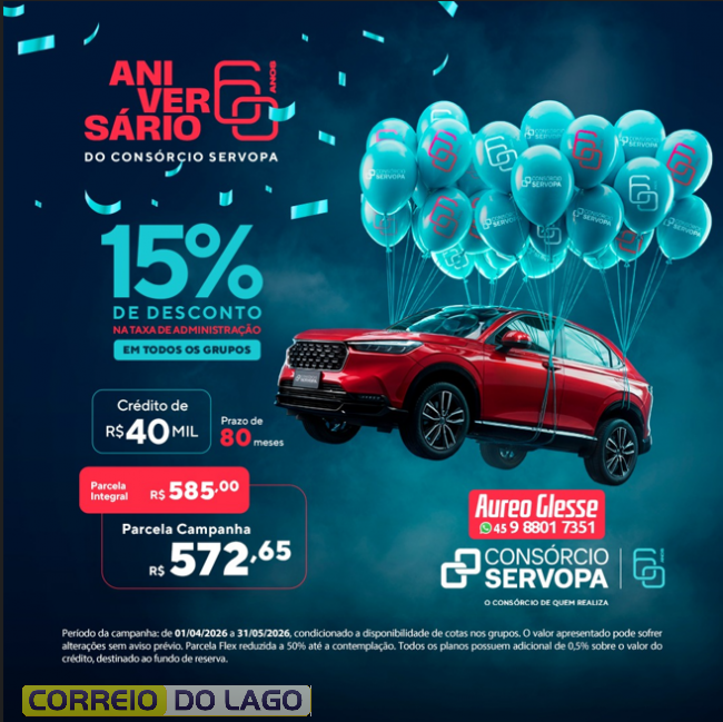 Consórcio Servopa reúne créditos de entrada e intermediários, parcelas acessíveis e desconto nas taxas! Saiba detalhes com Áureo Glesse