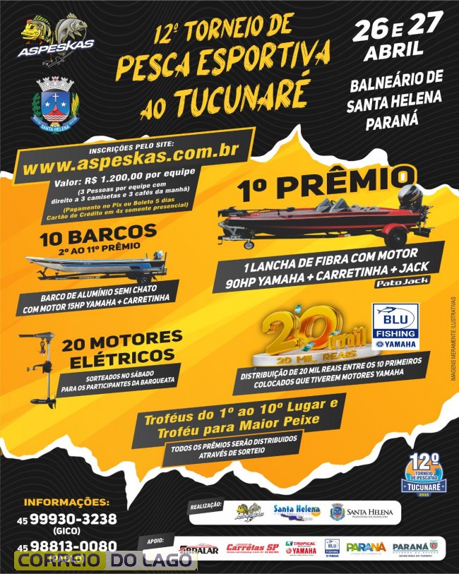 O Café da Manhã no Correio do Lago recebeu nesta quarta-feira (12), o presidente da Aspeskas, Giovanni Maffini, conhecido como Gico, para falar sobre a 12ª Pesca ao Ticunaré, que será realizada nos dias 26 e 27 de abril em Santa Helena.