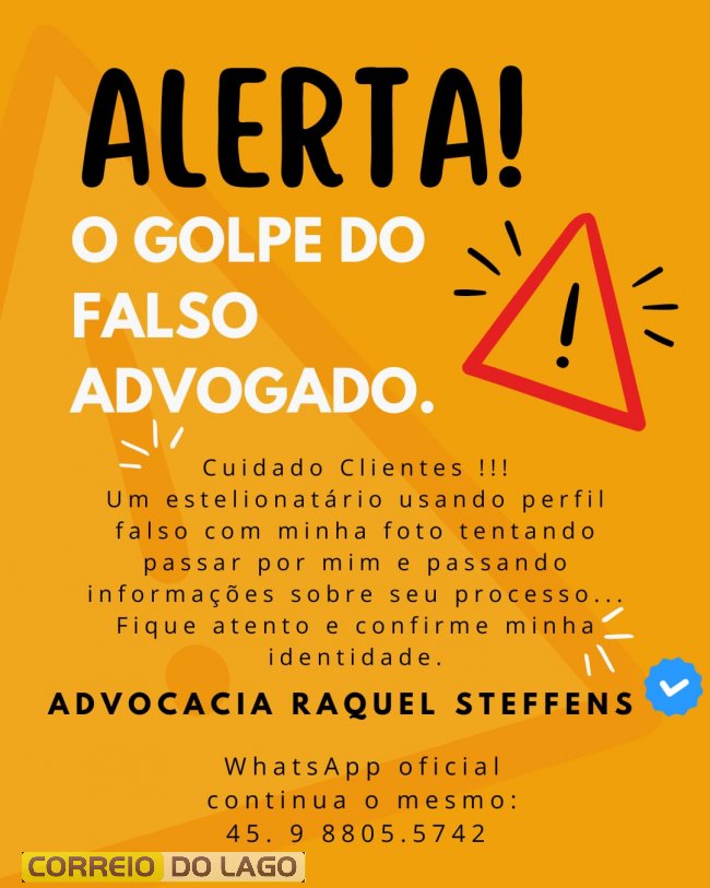 A advogada Raquel Steffens, ex-moradora de Santa Helena e inscrita na OAB do Paraná, divulgou um vídeo de alerta após identificar que um golpista está usando seu nome e sua imagem para enganar clientes.
