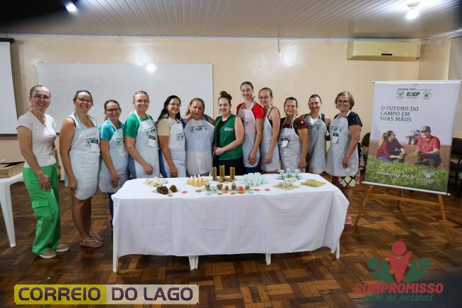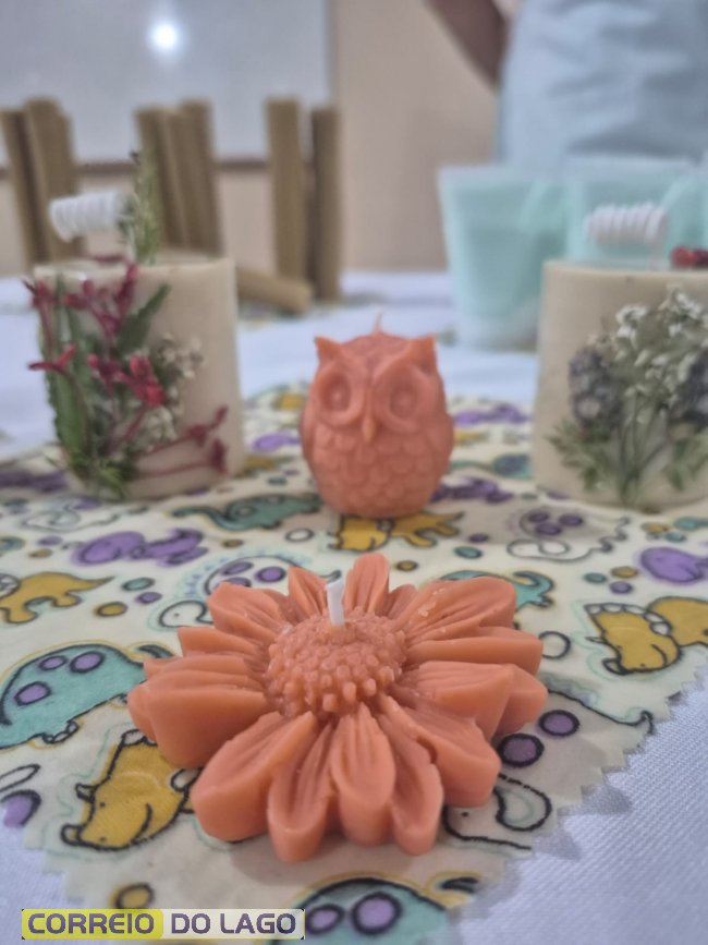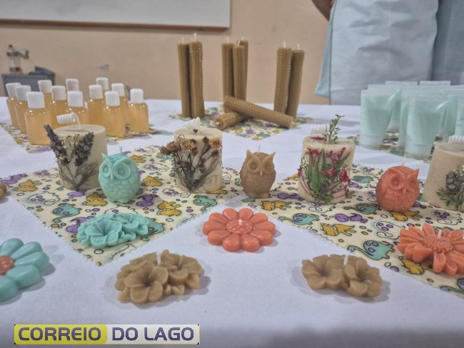 Durante a formação, foram ensinadas técnicas de produção de sabonetes, cosméticos naturais, velas artesanais e panos de cera de abelha, além de orientações sobre acabamento, embalagem e comercialização.