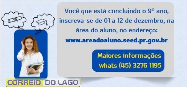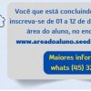 As matrículas vão de 1º a 12 de dezembro e podem ser feitas na secretaria do colégio ou pelo site www.areadoaluno.seed.pr.gov.br