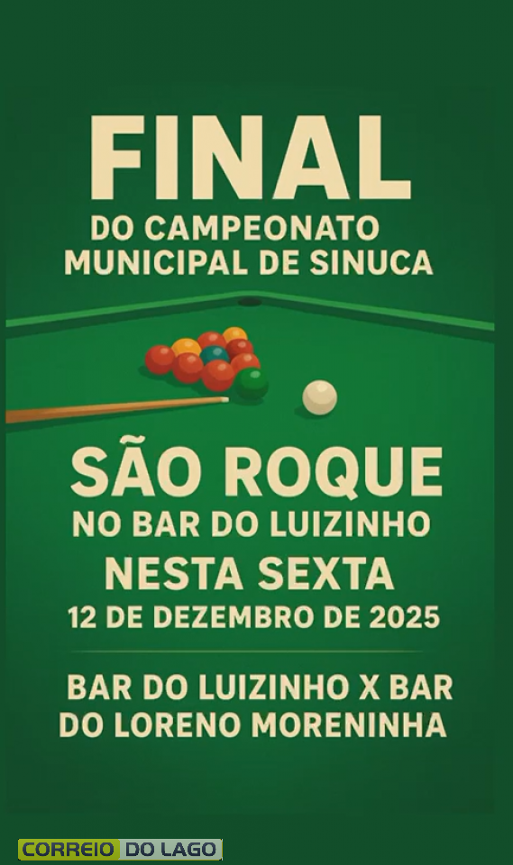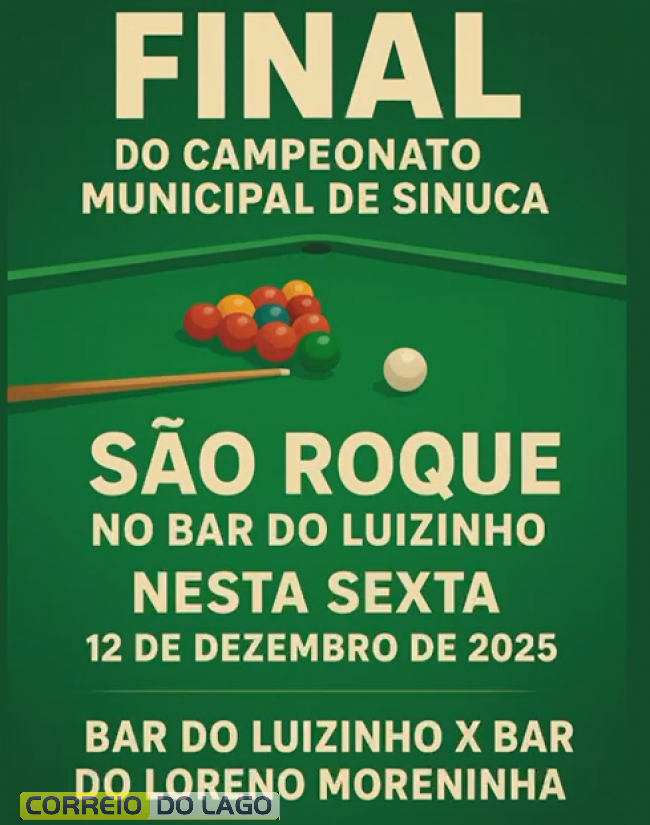 A grande final do Campeonato Municipal de Sinuca de São Roque acontece nesta sexta-feira (12), no Bar do Luizinho, palco do jogo de volta que vai definir o campeão da temporada. A disputa reúne Bar do Luizinho e Bar do Loreno Moreninha, equipes tradicionais e já conhecidas pelas partidas equilibradas.