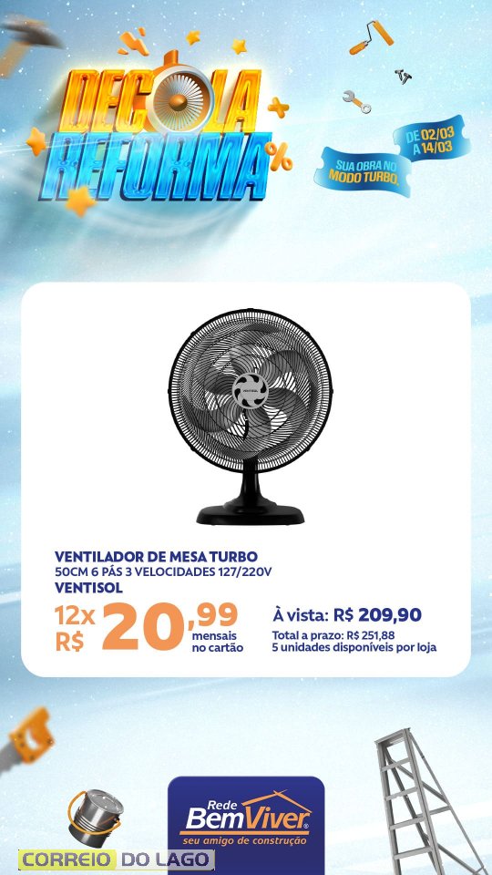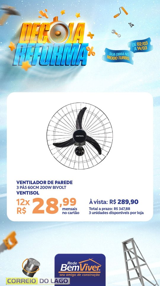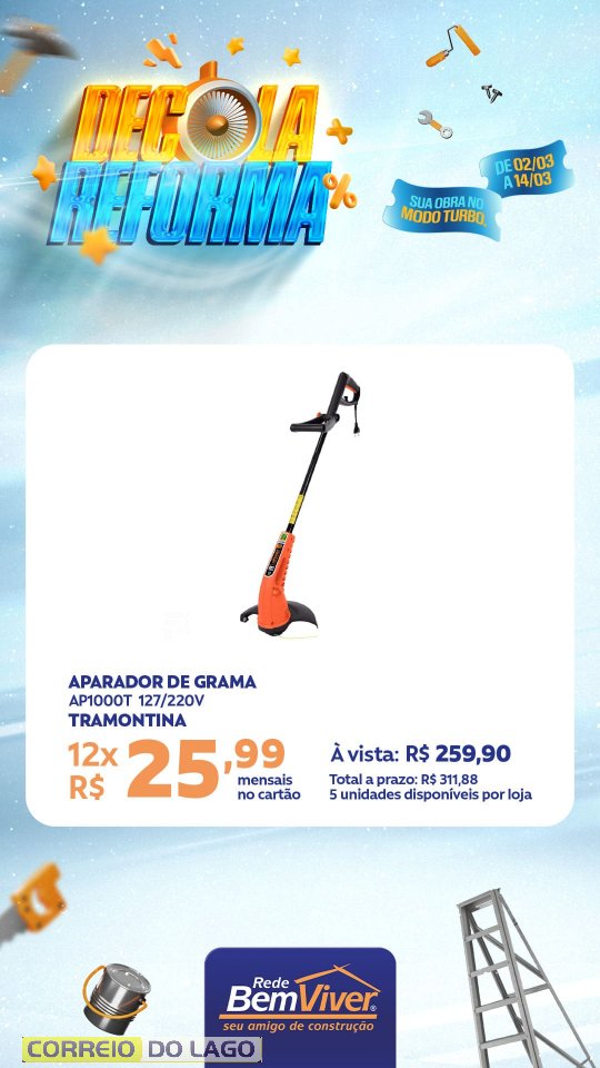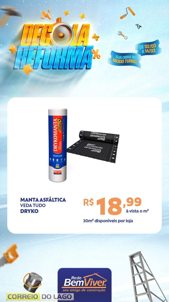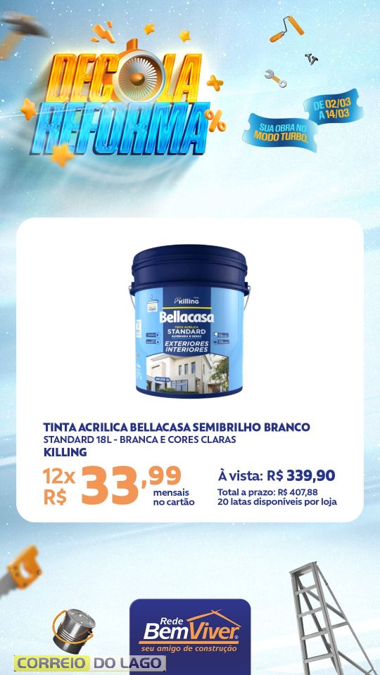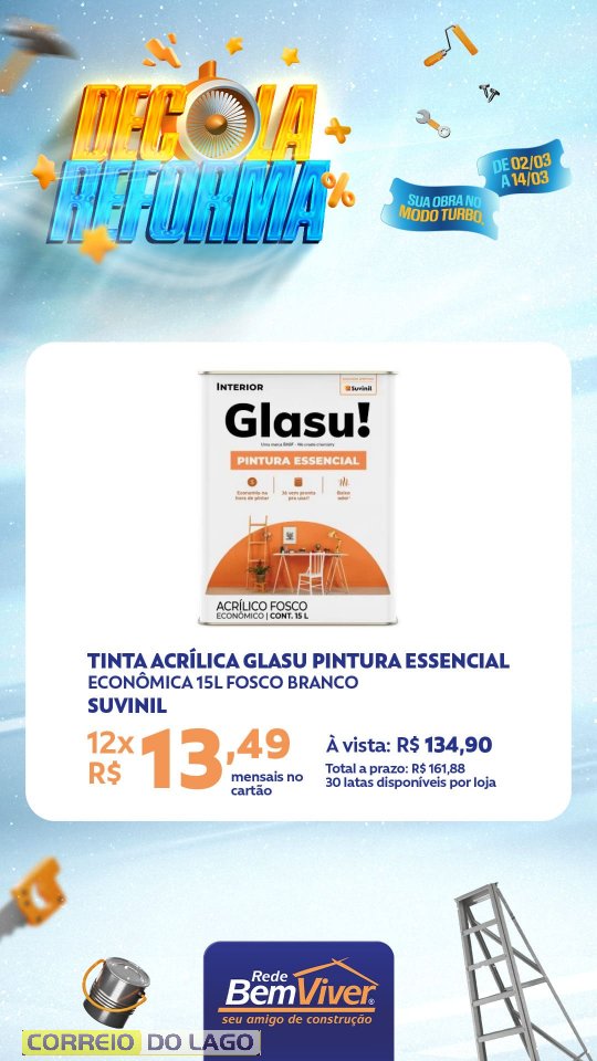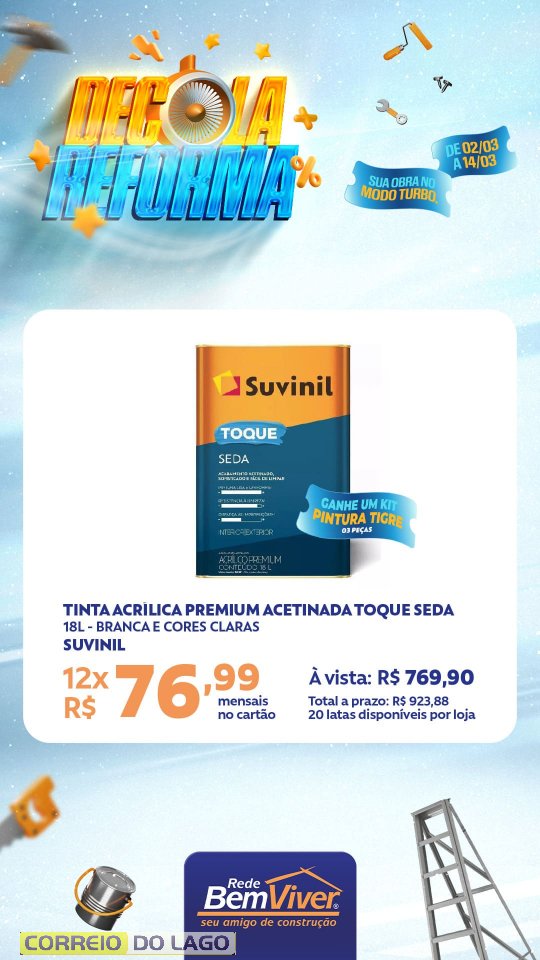 A campanha segue até o dia 14 de março, contemplando produtos para pintura, acabamento e construção, voltados a quem está reformando ou iniciando um novo projeto.