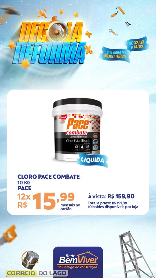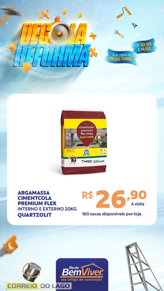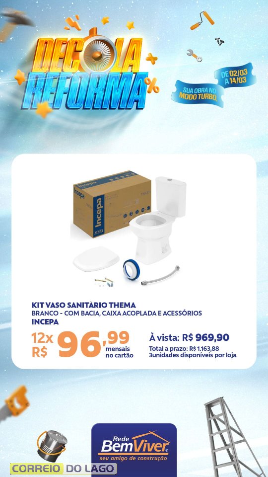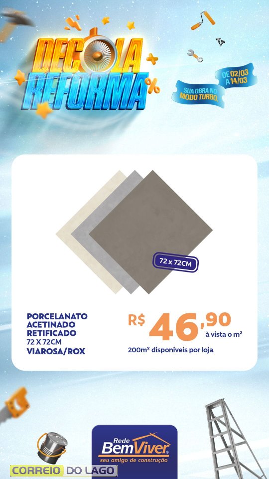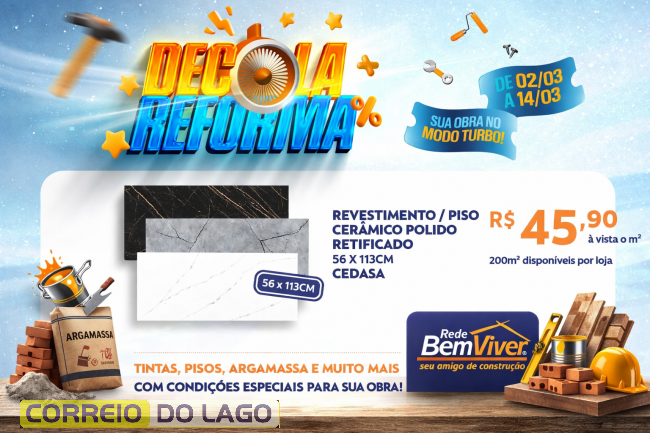 Quem deseja aproveitar as condições pode visitar a Ponto Forte Rede Bem Viver em Santa Helena e conferir de perto as ofertas da Decola Reforma, garantindo os materiais necessários para a obra com preços especiais.
