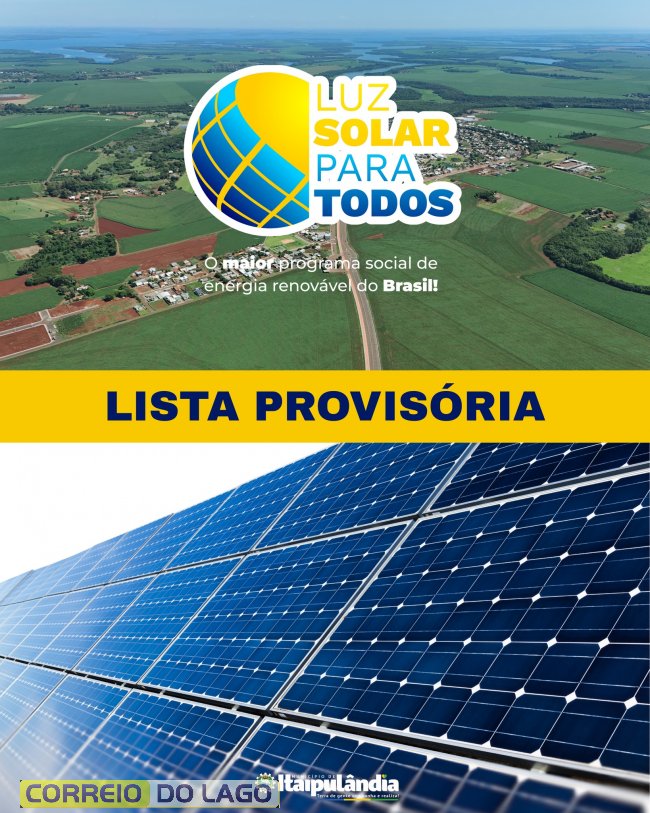 Definida lista da classificação provisória do Programa Luz solar Para Todos de Itaipulândia