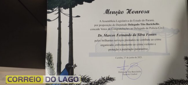 Delegado Marcos Fernando da Silva Fontes é homenageado na Assembleia Legislativa do Paraná