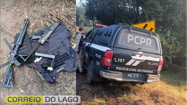 No local, conseguiu furtar a viatura caracterizada e armamentos da instituição, duas carabinas, uma espingarda calibre 12 e uma submetralhadora calibre 40, além do colete balístico. Os objetos já foram recuperados. A viatura foi encontrada abandonada na área rural de Londrina, no Norte do Paraná, a aproximadamente 180 km de distância de onde ocorreu o crime.