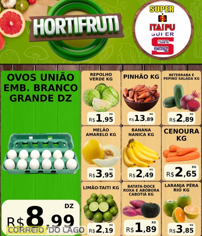 As ofertas do hortifruti no Super Itaipu e Super Santa Helena são válidas nesta quarta (4) e quinta-feira (5), com preços especiais em frutas, legumes e verduras fresquinhas. Aproveite para economizar.