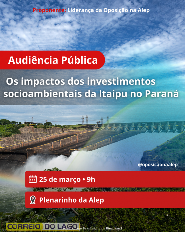 A audiência será realizada no Plenarinho da Alep, em Curitiba, e contará com a presença de parlamentares e representantes de diversos setores. O encontro é promovido pela Bancada de Oposição e terá transmissão ao vivo pelos canais oficiais da Alep.