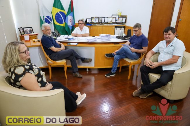 Na reunião estiveram presentes o Prefeito Ferrari, vice-prefeito Chenho, Secretária de Planejamento, Marilene Philippsen e o secretário de Meio Ambiente, Eloy Everling.