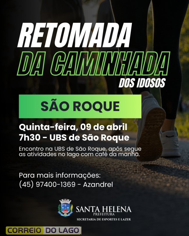 A comunidade do distrito de São Roque, em Santa Helena, tem um encontro marcado com a saúde, o lazer e o bem-estar. Nesta quinta-feira, dia 09, acontece a tão aguardada retomada da Caminhada dos Idosos, promovendo qualidade de vida para a terceira idade.