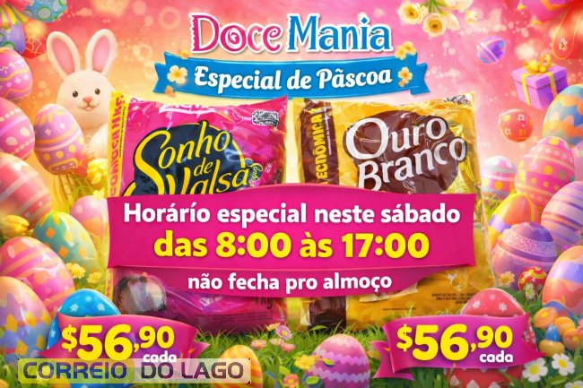 A semana mais doce do ano ganhou um ritmo especial em Santa Helena. Neste sábado (04), a Doce Mania atende em horário diferenciado, das 08h às 17h, sem fechar para almoço, facilitando a vida de quem deixou os presentes de Páscoa para a última hora, mas não abre mão de surpreender.