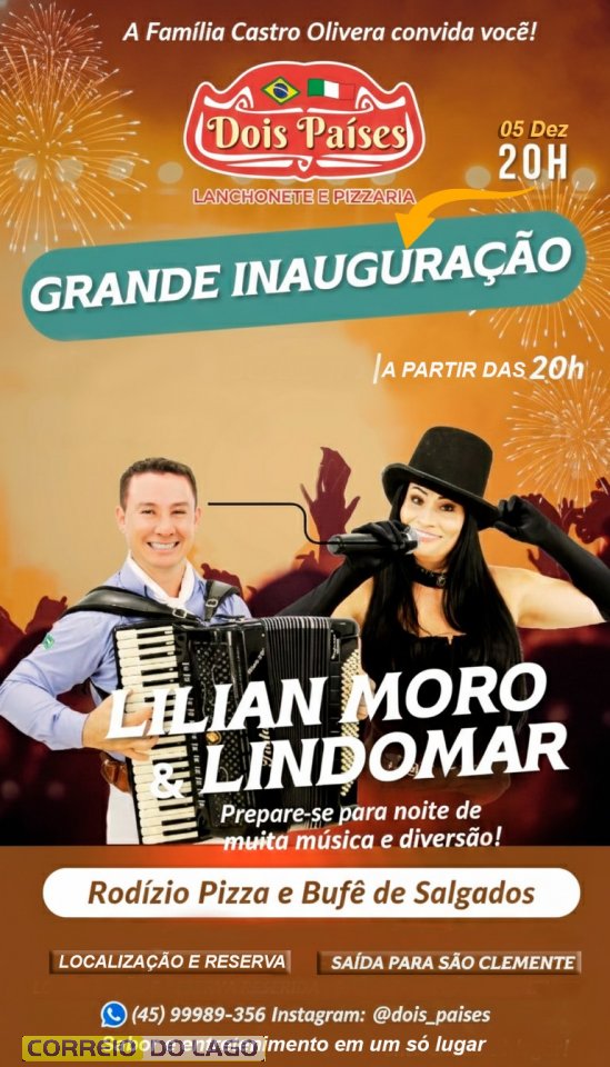 O ponto alto da noite será o show inédito da dupla Lilian Moro & Lindomar, que promete animar o público e transformar a inauguração em uma verdadeira festa.