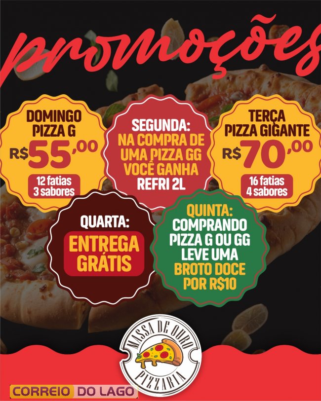 Aproveite a promoção e torne seu domingo ainda mais delicioso com as pizzas irresistíveis da Massa de Ouro.