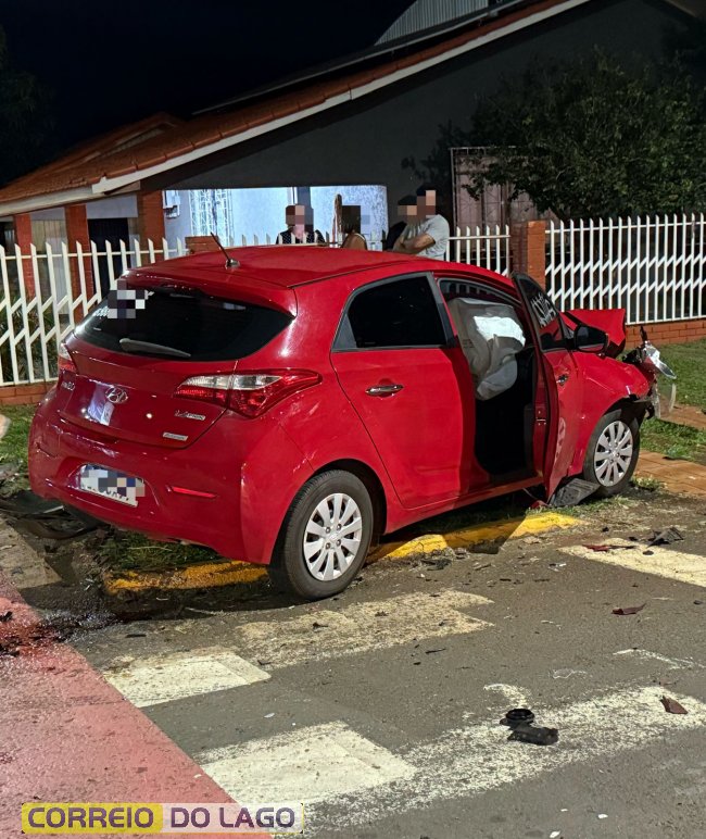 Na noite deste sábado (19), um acidente de trânsito deixou duas pessoas feridas na rua Ângelo Cattani, trecho urbano da PR-317, em Santa Helena. A colisão envolveu um Hyundai HB20 e uma GM Blazer, nas proximidades de um posto de combustíveis.