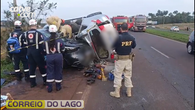 Equipes da Polícia Rodoviária Federal (PRF), do Corpo de Bombeiros e do SAMU foram mobilizadas e prestam atendimento no local. O Corpo de Bombeiros precisou cortar as ferragens para retirar as vítimas.