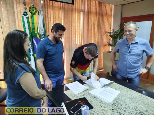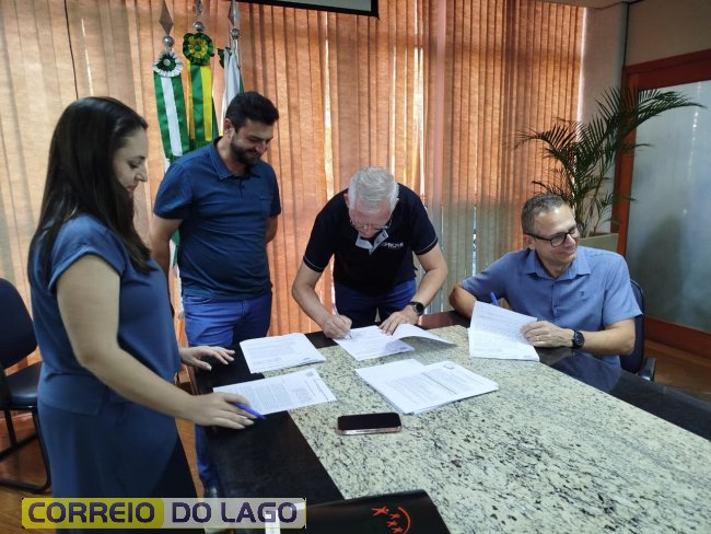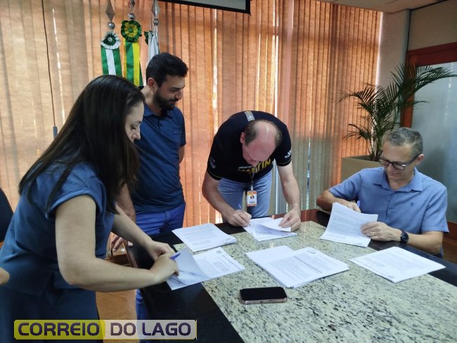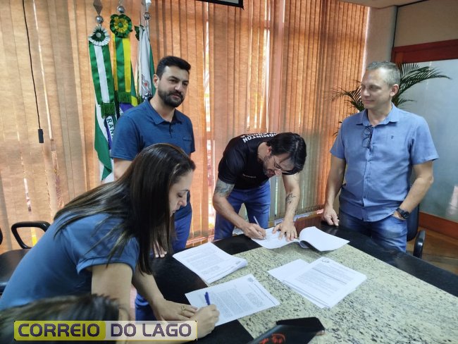 Na tarde desta sexta-feira (19), foi realizada na sala de reuniões do gabinete, na prefeitura de Marechal Cândido Rondon, a assinatura do II Termo Aditivo para repasses de recursos provenientes de doações do Imposto de Renda destinadas ao Fundo Municipal da Criança e do Adolescente. Estiveram presentes o prefeito Adriano Backes, o vice-prefeito Vanderlei Sauer, o vereador coronel Wellyngton Alves da Rosa, a secretária de Assistência Social e primeira-dama Andria Backes, demais secretários municipais, representantes das entidades beneficiadas e convidados.