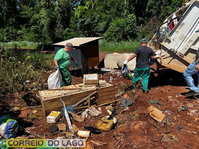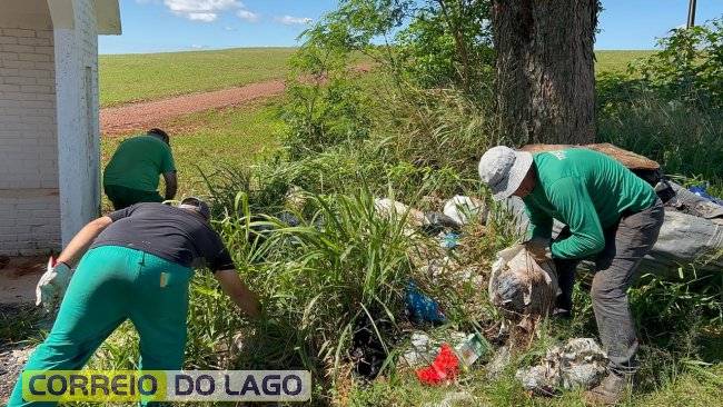 Equipes de Santa Helena realizam coleta de lixo descartado irregularmente em São Clemente