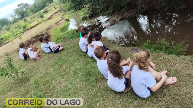 A Educação Infantil também esteve envolvida com uma dramatização musical sobre a água, tornando o aprendizado mais leve e divertido para as crianças. Já nas áreas externas da escola, os alunos participaram de oficinas em uma nascente recuperada, onde conheceram de perto o processo de revitalização de fontes naturais e o impacto positivo da preservação ambiental.