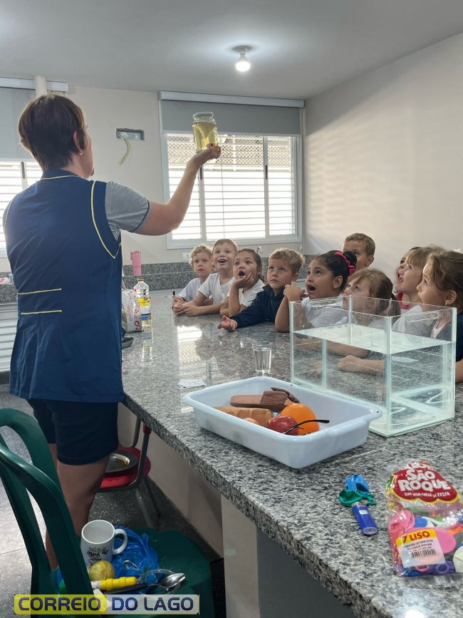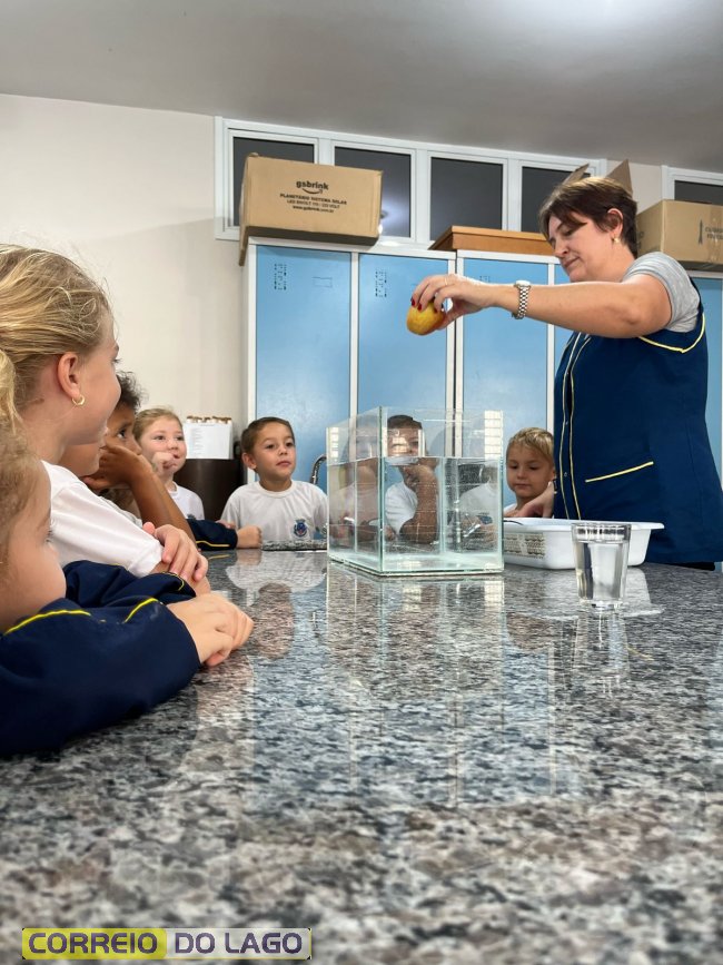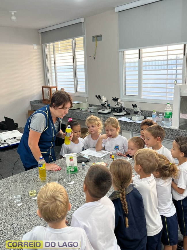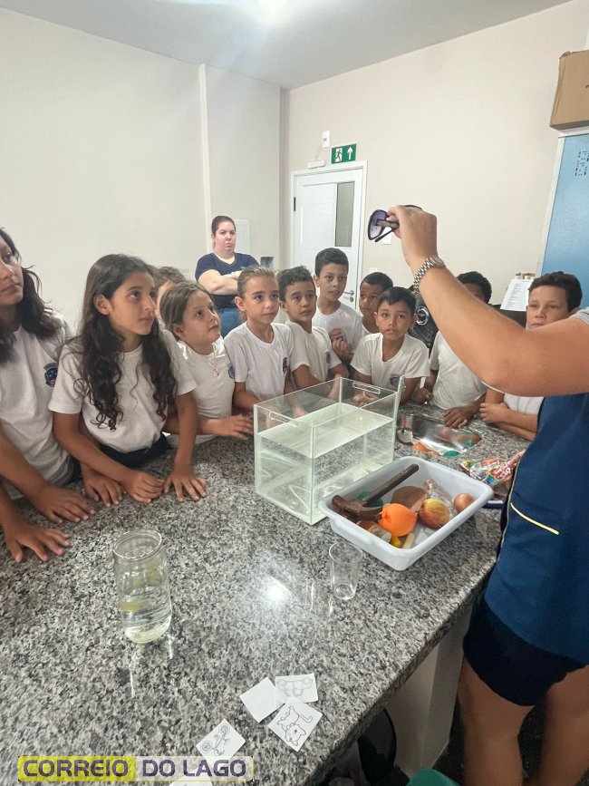 No Laboratório de Ciências, os alunos participaram de oficinas experimentais, aprendendo sobre as propriedades da água, sua qualidade e os ciclos naturais. A proposta despertou o interesse dos estudantes e destacou a necessidade de preservação desse recurso.