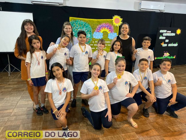 O evento também foi marcado por momentos de reconhecimento escolar. Os alunos do 2º ao 5º ano que participam do projeto “Bom da Tabuada” foram premiados com medalhas de ouro, prata, bronze e cobre, conforme o desempenho: