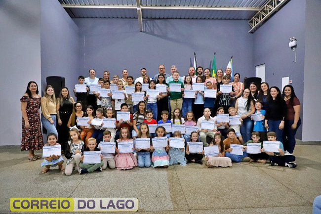 Alunos que se destacaram no 2º trimestre letivo receberam certificados diante de familiares, colegas e professores, em um momento marcado pela celebração das conquistas e avanços no aprendizado.