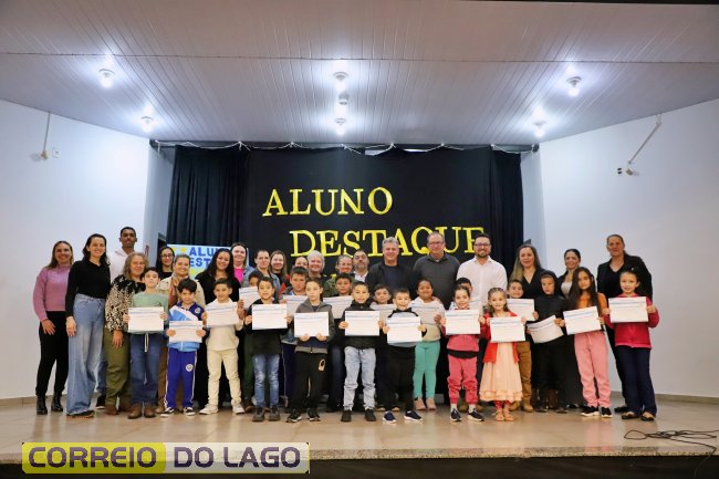 A Escola Municipal Rondônia de Itaipulândia promoveu a entrega de certificados aos 20 alunos que se destacaram no 1º trimestre letivo de 2025, com notas acima de 8,0 como média nas avaliações do Projeto Mais IDEB nos Municípios Lindeiros ao Lago de Itaipu, avaliações diagnósticas da SMED e avaliações do Compromisso Nacional Criança Alfabetizada (CNCA).