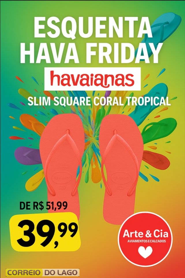 A Arte&Cia já entrou no clima de Black Friday com promoções especiais em Santa Helena. Entre os destaques estão o Barbante Fial 2kg e diversos modelos de Havaianas com preços a partir de R$ 39,99.