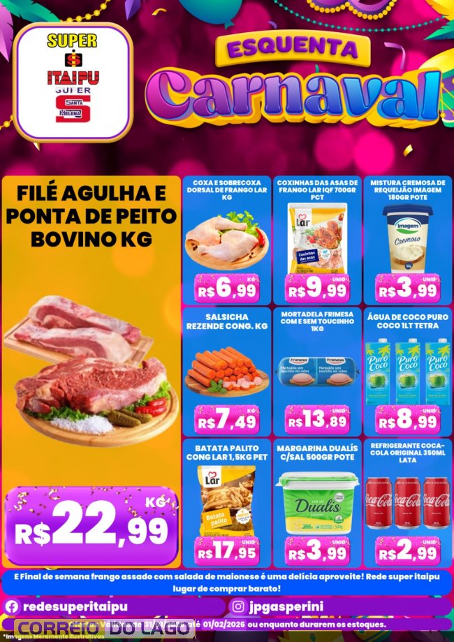 Esquenta Carnaval une folia e preços baixos no Super Itaipu e Super Santa Helena. Confira as ofertas