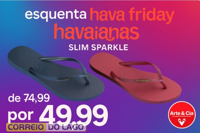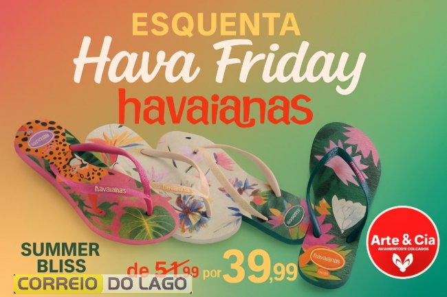 O esquenta continua na Arte&Cia em Santa Helena com promoções especiais. Entre os destaques estão o barbante, a partir de R$ 10,99, e diversos modelos de Havaianas masculinas e femininas, com preços a partir de R$ 39,99 no Esquenta Hava Friday.