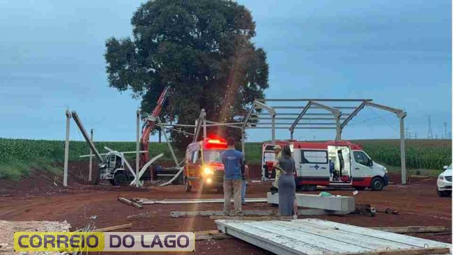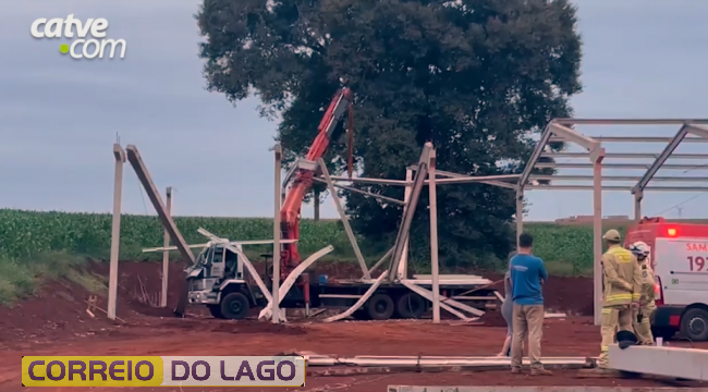Estrutura cede e trabalhadores despencam de 5 metros em obra na PR-486 em distrito de Cascavel