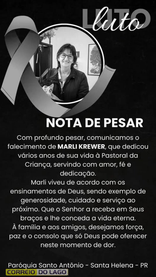 Faleceu nesta sexta-feira (11), vítima de enfarto, Marli Krewer. Sua partida repentina comoveu entidades como a própria Pastoral onde trabalhava há aproximadamente 20 anos, a Igreja Católica, que tem ligação direta com a Pastoral e Centro de Convivência dos Idosos.