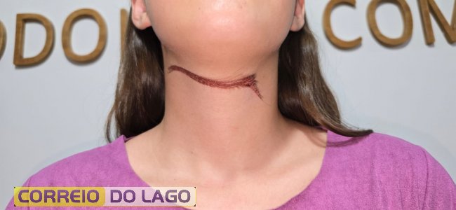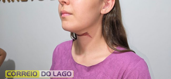 A mãe, Katia, levou a filha a uma consulta médica após ela relatar dor na garganta. Mas a princípio o ferimento foi apenas superficial.