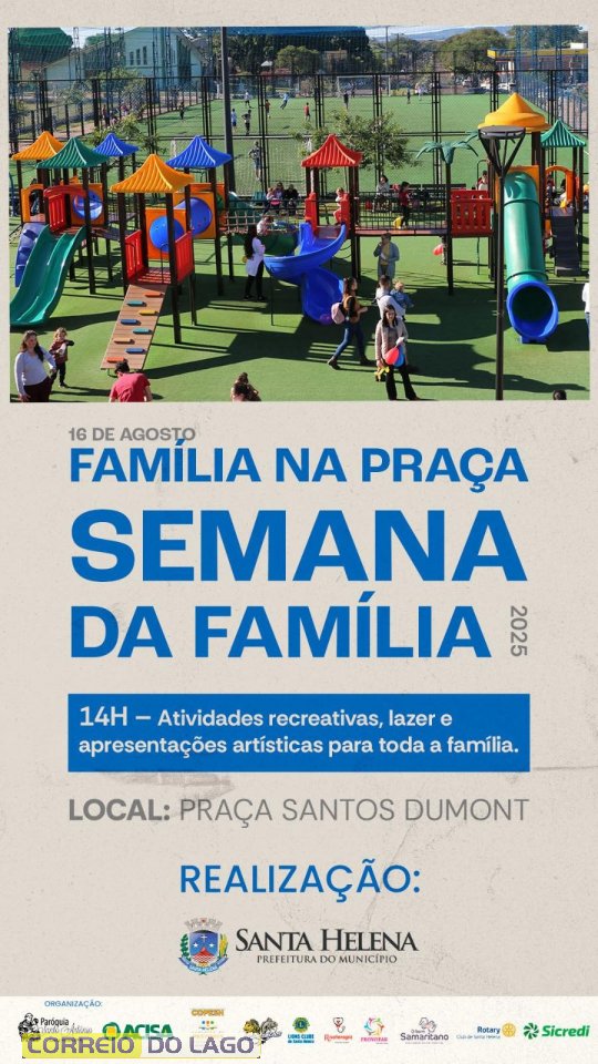 A Semana da Família 2025 continua com programação especial e, neste sábado (16), a Praça Santos Dumont será palco do evento Família na Praça, a partir das 14h.