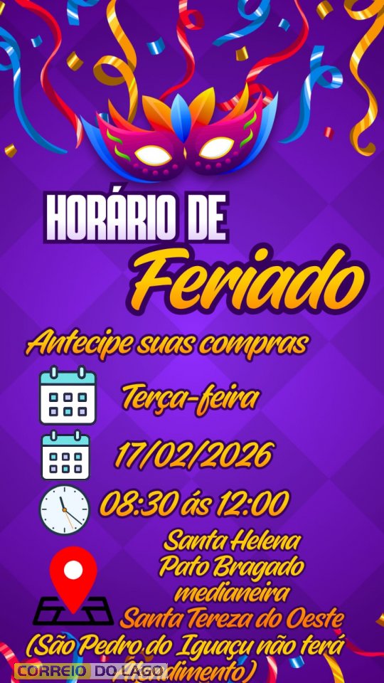 O feriado exige planejamento, e quem se antecipa evita imprevistos. O Super Itaipu e o Super Santa Helena divulgaram o horário especial de atendimento para esta terça-feira (17), orientando os clientes a organizarem suas compras com antecedência.