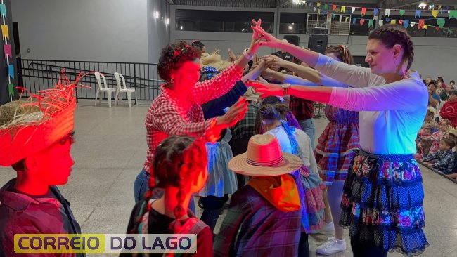 Na noite desta sexta-feira (13), dia de Santo Antônio, o município de Santa Helena viveu momentos de muita alegria e tradição durante a festa junina realizada pela Escola Tancredo Neves, localizada no bairro Vila Rica. O evento aconteceu no pavilhão Silom Schmidt, no Balneário Terra das Águas, e atraiu alunos, professores, familiares e moradores da comunidade.
