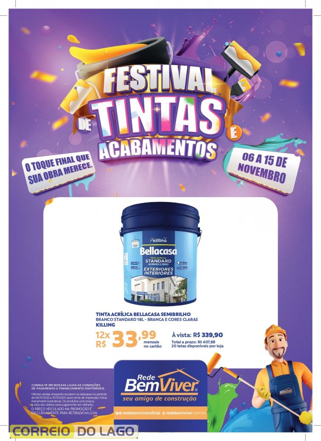 O festival oferece tudo o que é necessário para deixar o ambiente do jeito que você sempre quis, unindo qualidade, economia e beleza. São ofertas especiais em tintas, pisos, acabamentos e muito mais, tudo pensado para quem está construindo, reformando ou apenas quer renovar os espaços com um novo visual.