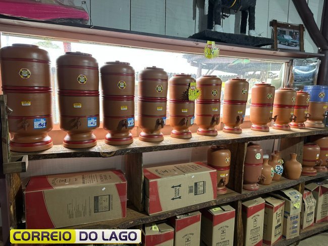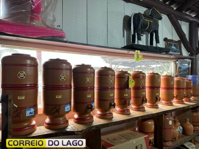Além dos filtros, o Rancho Crioulo oferece suportes de barro e moringas decoradas, que mantêm a água fresca e preservam o sabor característico da cerâmica. Funcionais e esteticamente atraentes, esses produtos proporcionam uma experiência diferenciada no consumo diário de água.