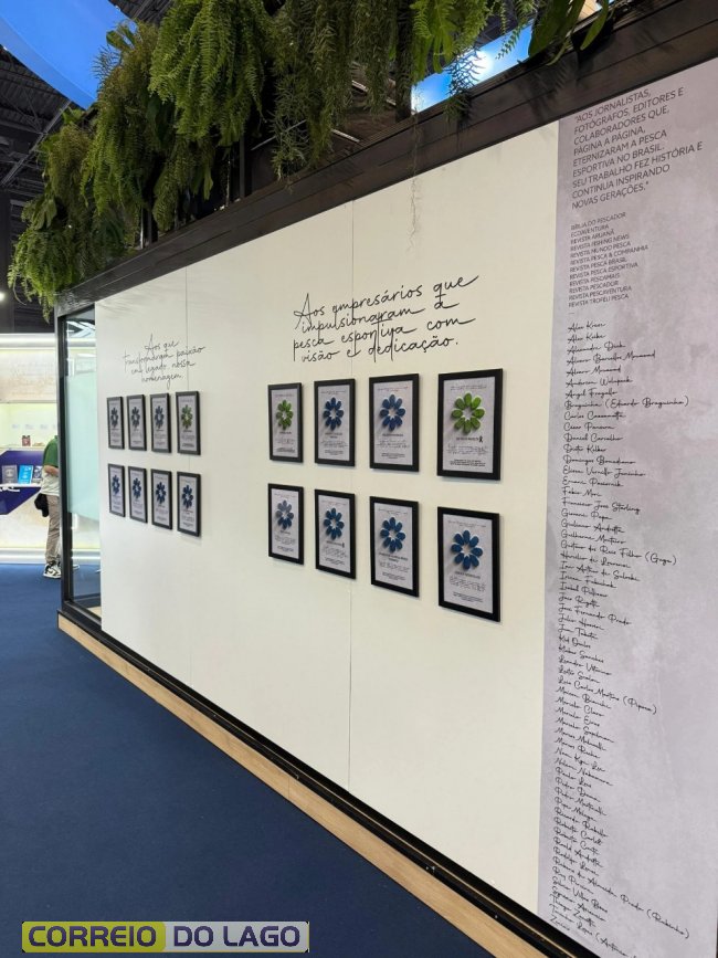 Alexandre Dick estava muito grato, pois foi homenageado no evento com o seu nome colocado num painel reverenciando os destaques do mundo da pesca esportiva!