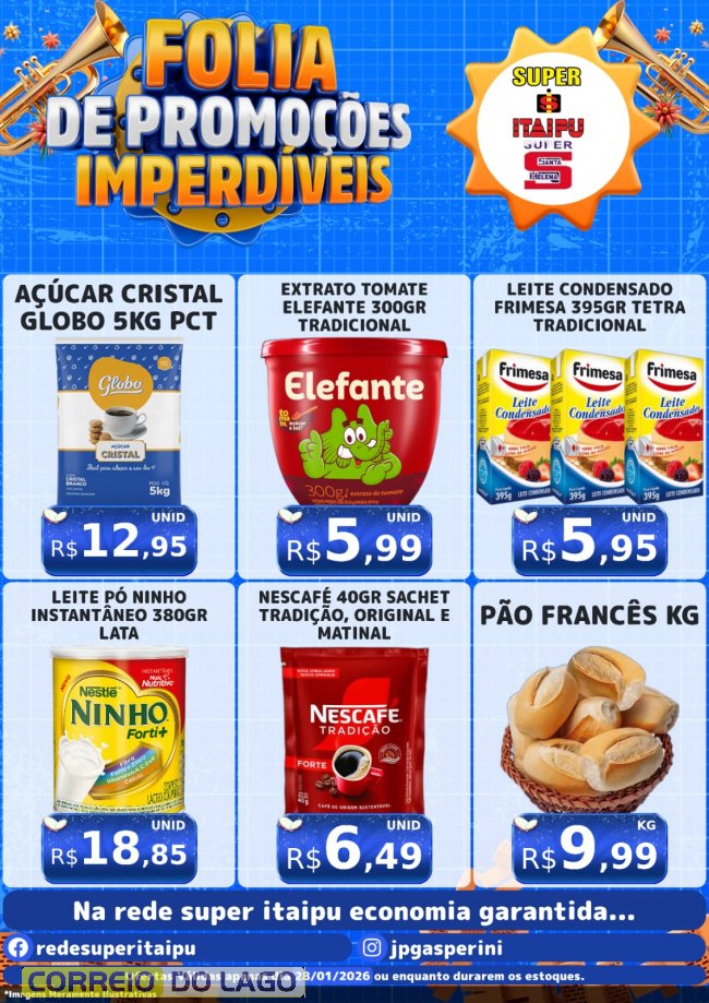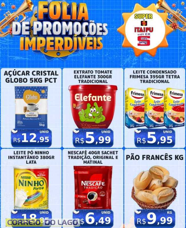 Nesta quarta-feira (28), o dia de feira no Super Itaipu e no Super Santa Helena chega com folia de promoções imperdíveis, ofertas especiais em diversos setores e preços que cabem no bolso. Aproveite produtos fresquinhos, variedade e economia de verdade. Confira as ofertas!