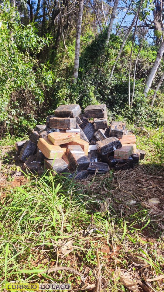 Durante patrulhamento realizado no âmbito da Operação Protetor de Divisas e Fronteiras, as equipes localizaram 170 fardos contendo substância análoga à maconha escondidos em uma área de mata. Após a pesagem, a carga totalizou 2.579,8 quilos.