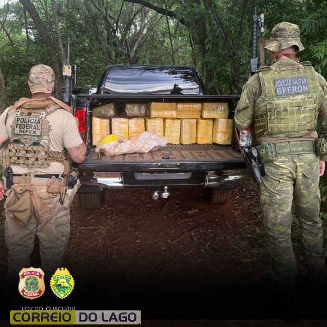 Policiais federais e militares, em ação conjunta de repressão ao tráfico internacional de drogas, localizaram um veículo sendo carregado com dezenas de fardos de maconha nas margens do lago de Itaipu, na zona rural do município de Santa Helena.
