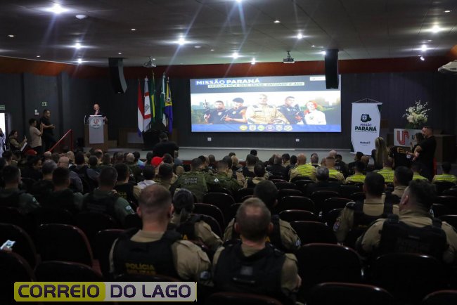 A Secretaria da Segurança Pública do Paraná realizou nesta terça-feira (22), em Guaíra, a apresentação oficial da Missão Paraná. A iniciativa marca o início de uma ação inédita, que une esforços operacionais e estratégias participativas para fortalecer a segurança pública de forma integrada e regionalizada. O evento reuniu representantes das forças de segurança federais, estaduais e municipais, além de autoridades do Ministério Público, do Judiciário e do Executivo.